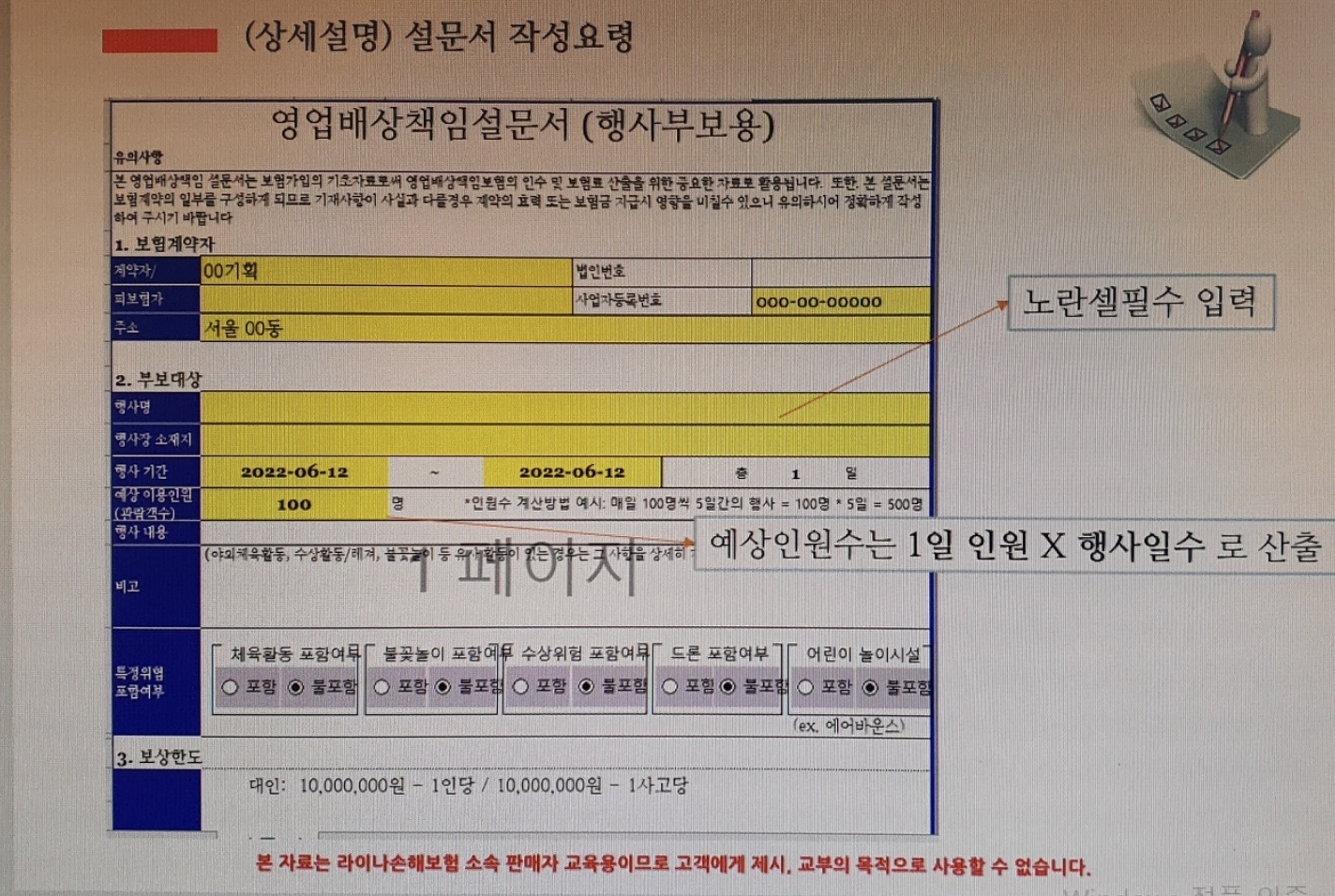 • 행사주최(운영)자 특별약관 필수가입, 필요에